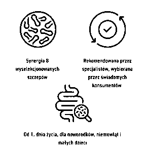 Szczególnie wskazany dla niemowląt i małych dzieci w przypadku zaburzeń równowagi mikrobioty jelitowej oraz w okresie niedostatecznej kolonizacji bakteryjnej przewodu pokarmowego np. po cięciu cesarskim.