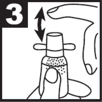 zastąpić nakrętkę kroplomierzem dołączonym do opakowania, wstrząsnąć kilkukrotnie do uzyskania jednolitej zawiesiny.